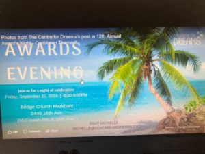 Join the Centre for Dreams as they party through the Caribbean at our 12th Annual Awards’s Night on Friday September 20th, 2019! The show begins at 6:30PM and is absolutely FREE! All are welcome to attend to celebrate and cheer on our members and community supporters. Confirm your attendance by contacting Michelle Del Carmen at michelle@centrefordreams.ca.