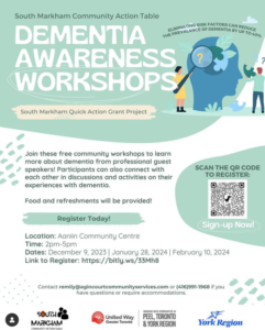 🧠 The resident-led project Dementia Awareness will be hosting a short workshop series starting this December into February! Join us at our upcoming workshops to learn about dementia from our amazing guest speakers and learn together with other families! 🫂 Where: Aaniin Community Centre When: December 9th, 2023, January 28th 2024 & February 10th 2024 Time: 2-5pm 📝 Register Today: https://bitly.ws/33Mh8 This is a Resident-led Quick Action Grant project funded by United Way Greater Toronto.