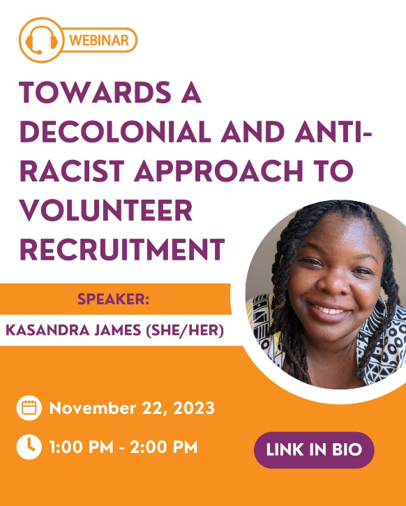 🌟 Join us for a critical conversation on Ontario’s volunteer landscape! Learn more about Decent Volunteering and anti-racist screening with our expert speaker, Kasandra James (she/her), Director of Programs at @volunteertoronto.